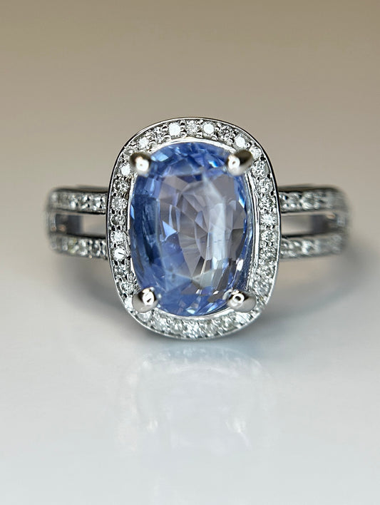 3.04 CT Unheated/Untreated Ceylon Cornflour Blue Sapphire Diamonds & 18k Gold