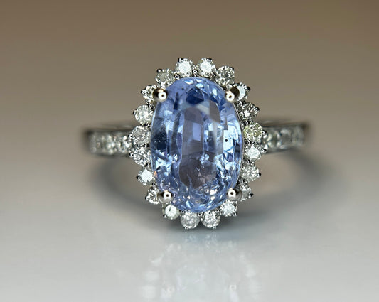 2.79CT Unheated/Untreated Ceylon Cornflour Blue Sapphire Diamonds & 18k Gold