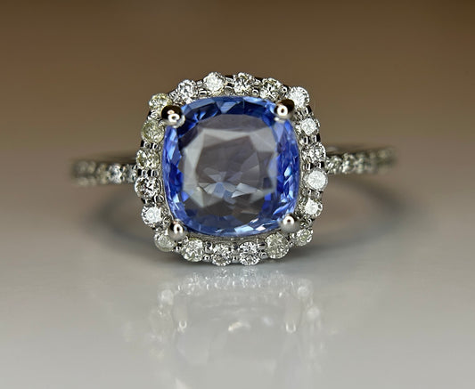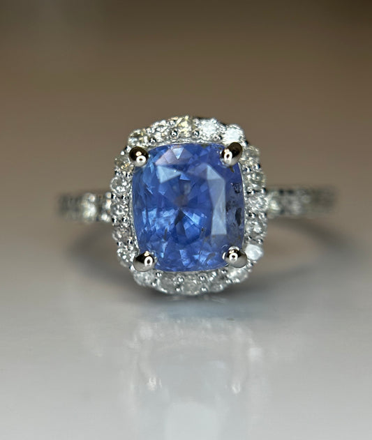 2.74 CT Unheated/Untreated Ceylon Cornflour Blue Sapphire Diamonds & 18k Gold