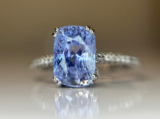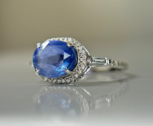 3.55 CT Unheated/Untreated Ceylon Cornflour Blue Sapphire Diamonds & 18k Gold