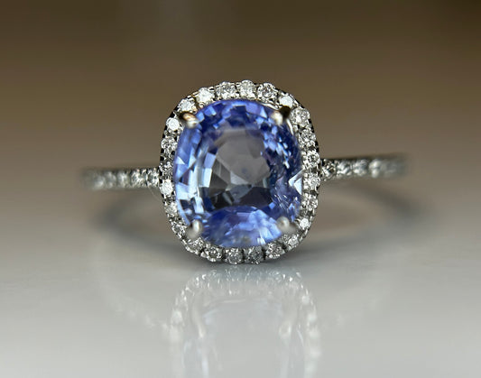 1.94 CT Ceylon Cornflour Blue Sapphire Diamonds & 18k Gold