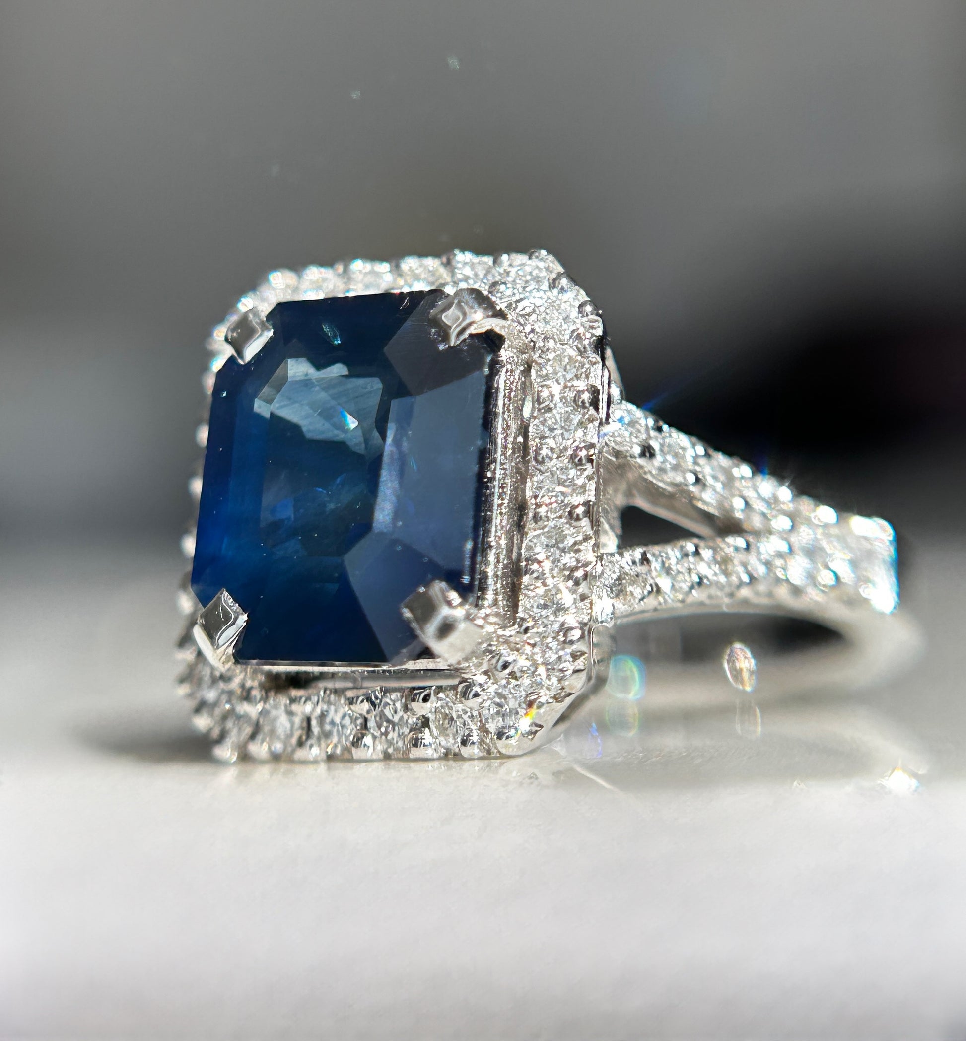 Beautiful 3.50CT Blue Sapphire With Diamonds & 18k White Gold