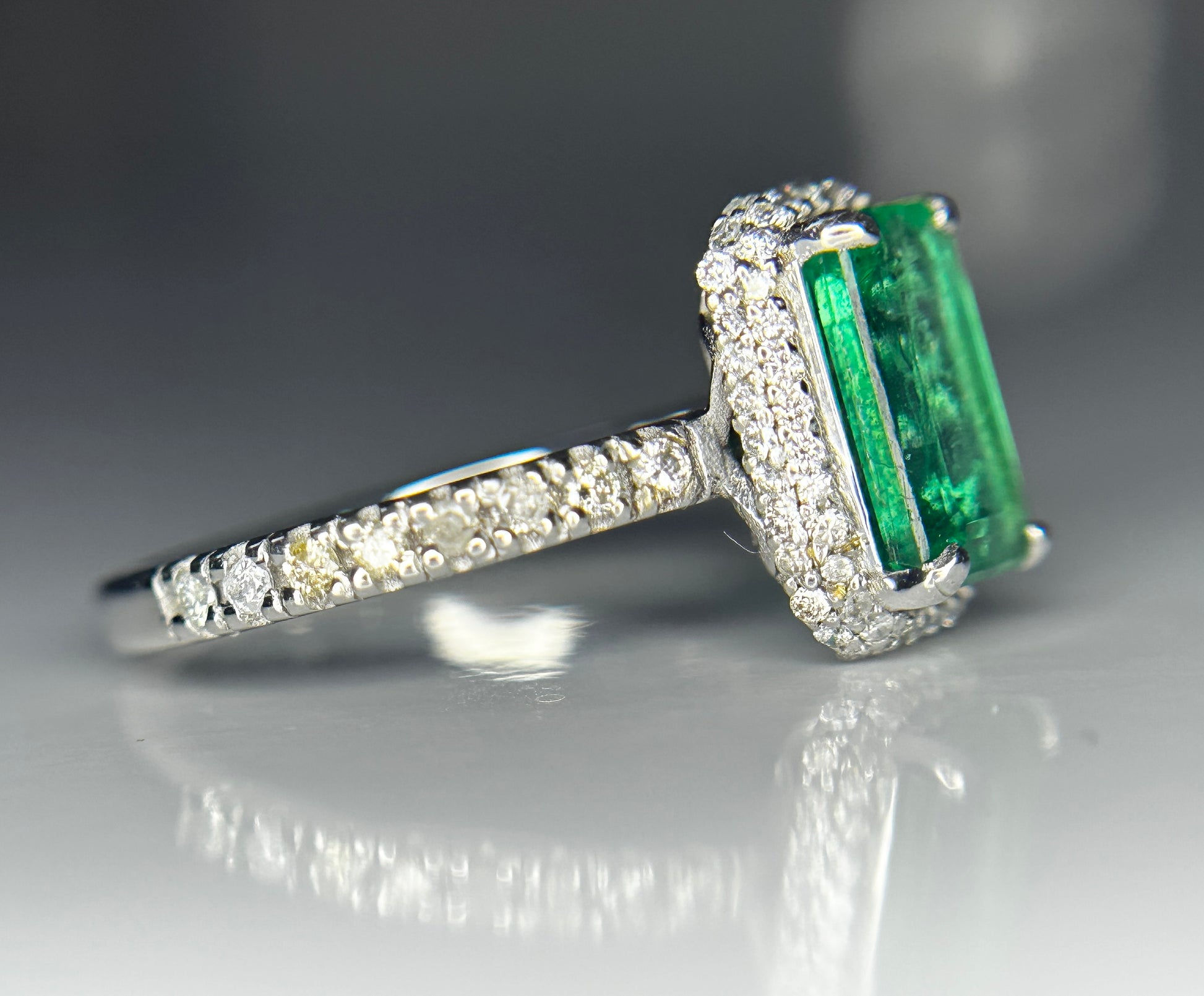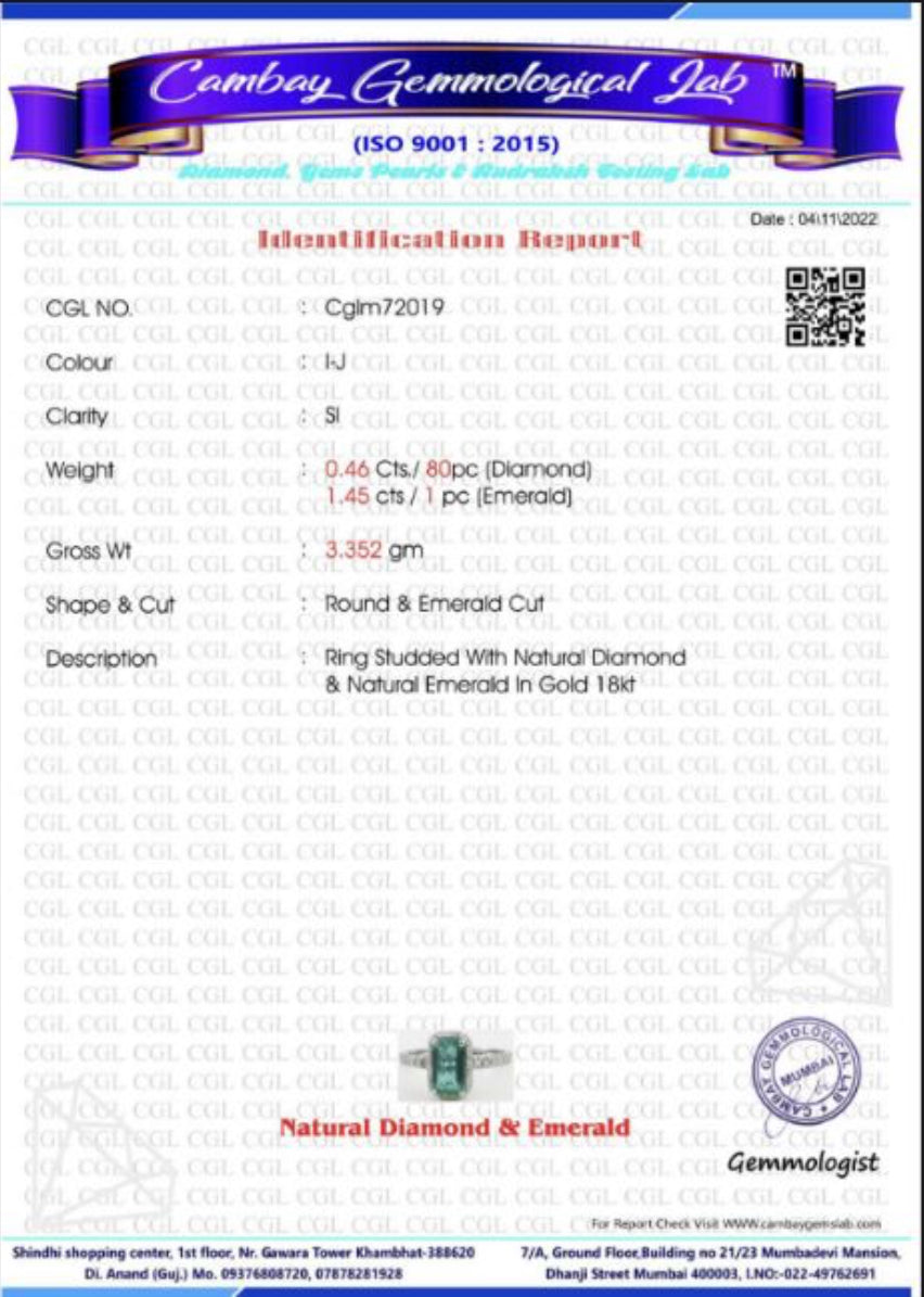 Beautiful 1.45 CT Natural Emerald With Natural Diamonds & 18kGold