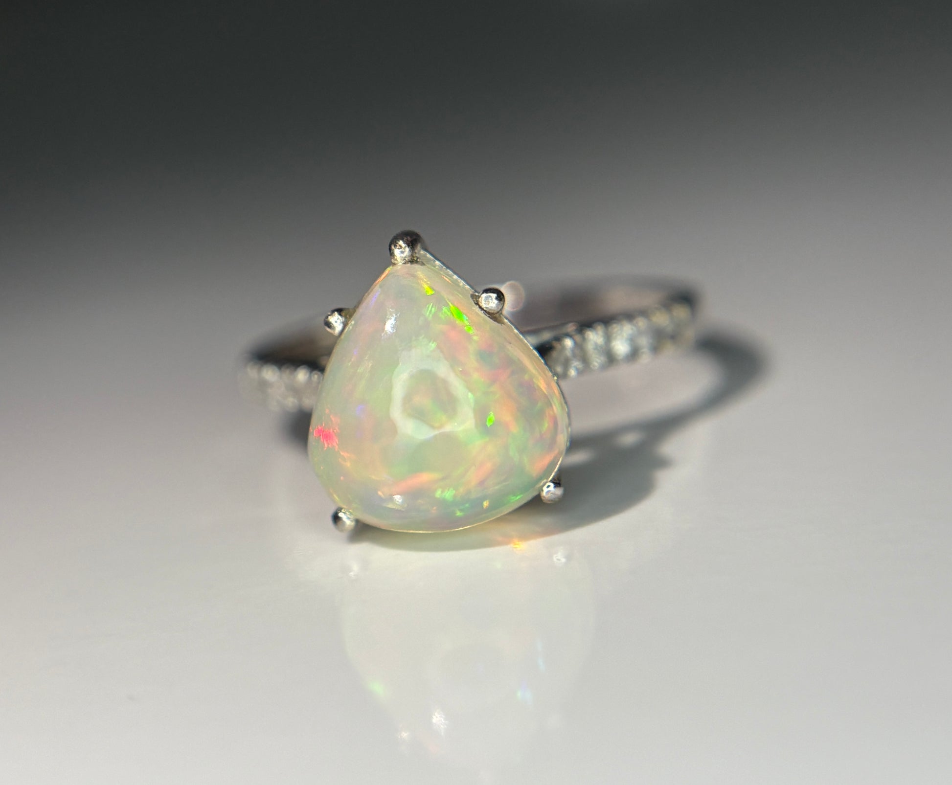 Beautiful Natural Fire Opal Ring With Diamonds and 18k Gold.